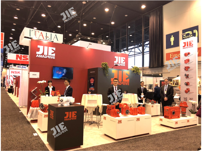? ? ? 2018年09月10日-15日,杰牌美國公司與歐洲、美國、日本等一線品牌同臺競技,亮相芝加哥IMTS2018展覽會。杰牌傳動董事長攜杰牌美國總經理和總工程師等一行6人向來賓系統展示了JRT齒輪減速電機、JRH工業齒輪箱、JRP行星齒輪箱、JRST蝸桿減速機、JD電動機、JCM變頻一體減速電機等整體傳動解決方案,通過專業交流與溝通獲得了客戶的積極響應。為全面提升美國客戶和美洲客戶滿意度提供了專業保障,杰牌為全球好客戶做好產品!